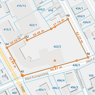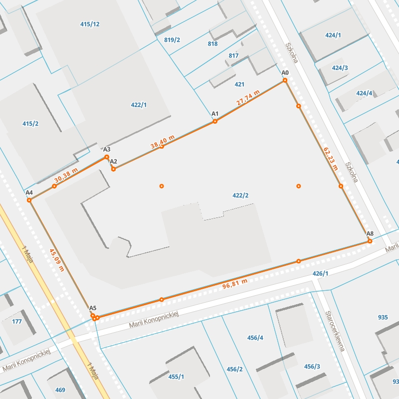 | A1 ← 52.19581198, 23.20922928 | A2 | 38,40 m |
