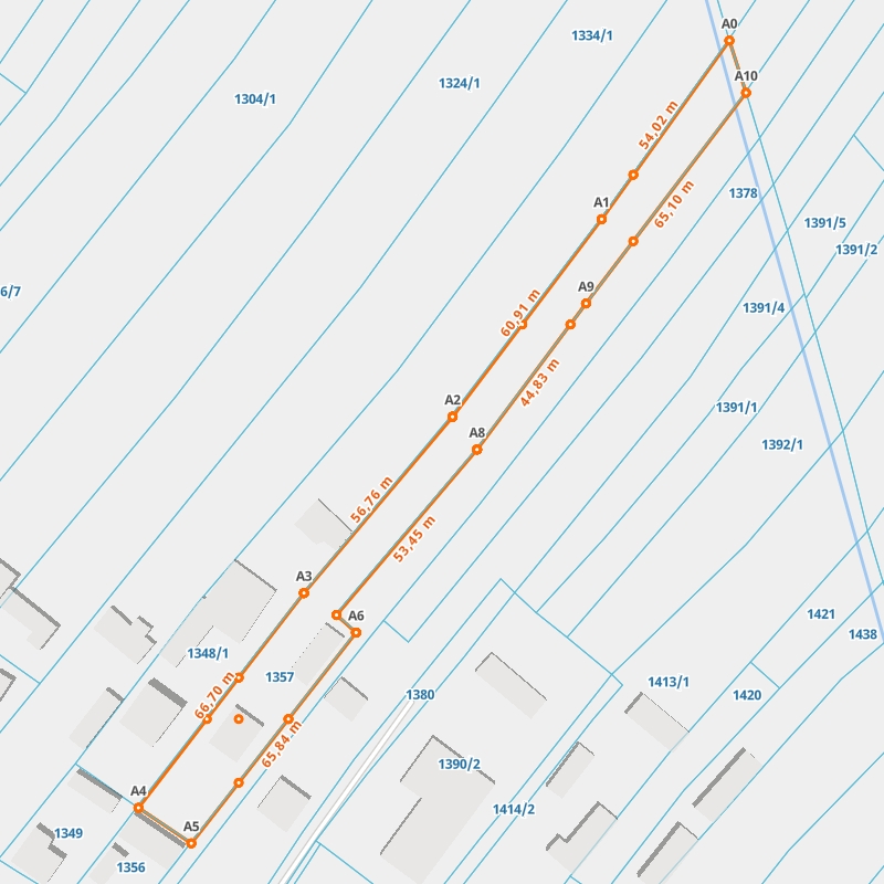 | A0 ← 50.56860204, 22.31699981 | A1 | 54,02 m |