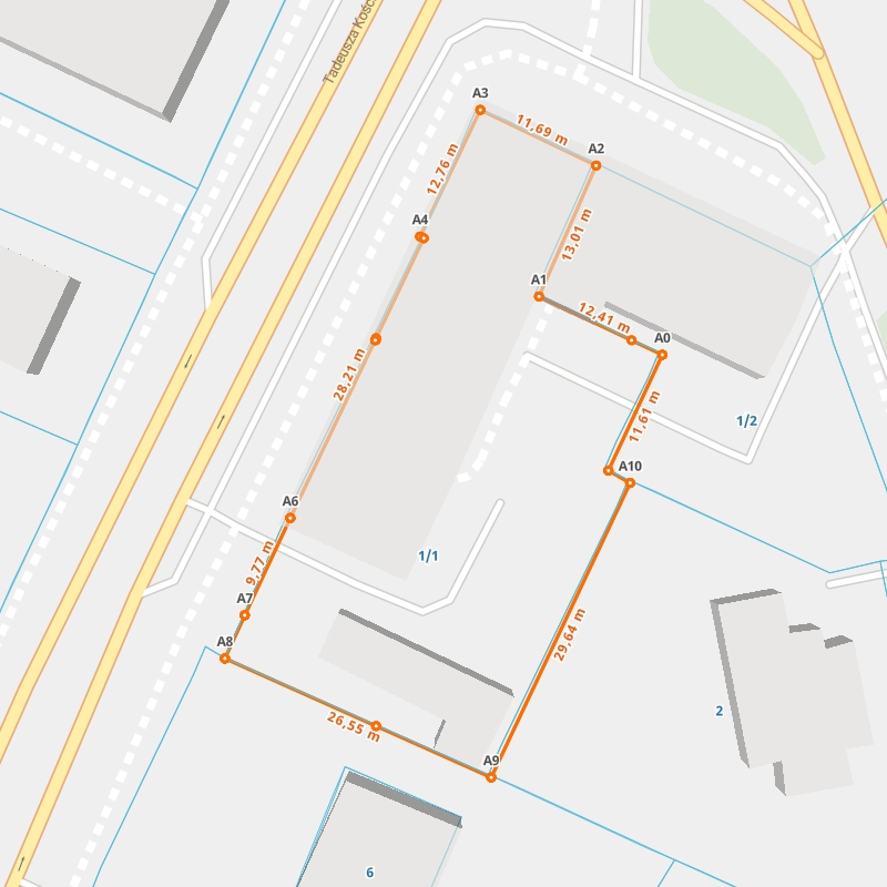 | A0 ← 53.77406828, 20.48612132 | A1 | 12,41 m |