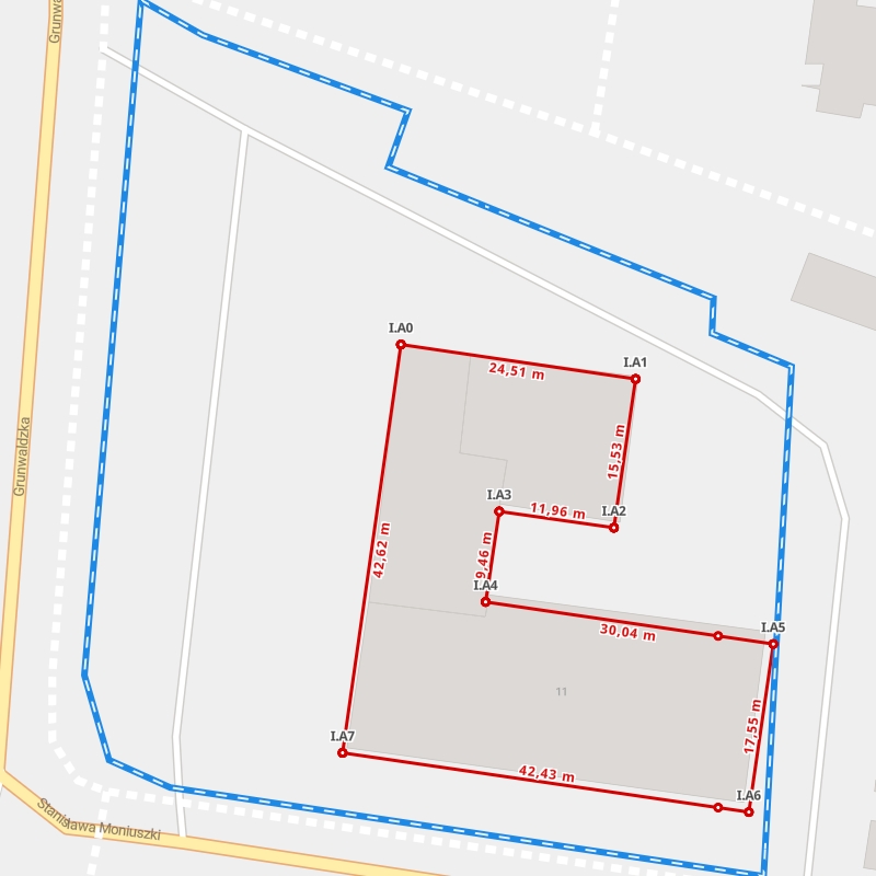 | A0 ← 50.97570188, 18.21207786 | A1 | 7,35 m |