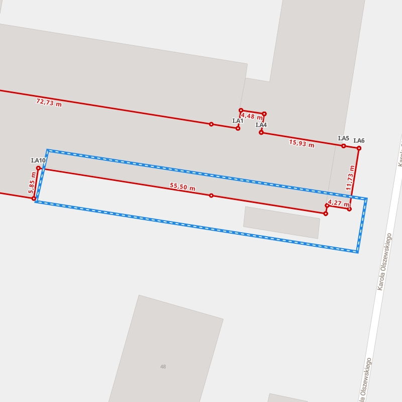 | A1 ← 50.06112132, 18.92811612 | A2 | 10,23 m |