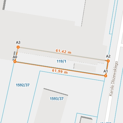 | A0 ← 50.06120766, 18.92725924 | A1 | 61,99 m |