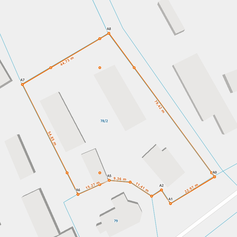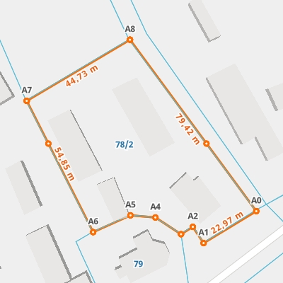 | A8 ← 52.21594863, 15.7396906 | A0 | 79,42 m |