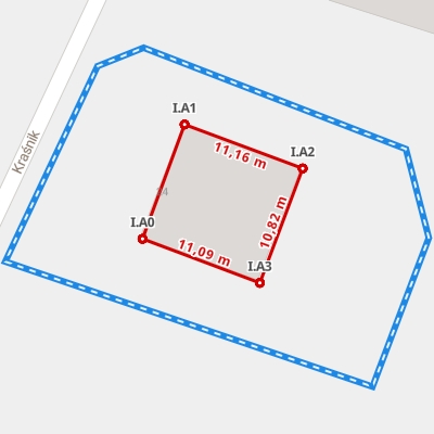| A1 ← 49.96362855, 19.93752724 | A2 | 14,08 m |