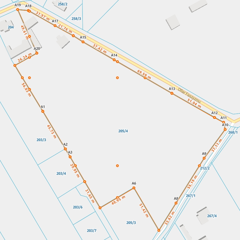 | A5 ← 53.15419993, 20.79478805 | A6 | 40,95 m |