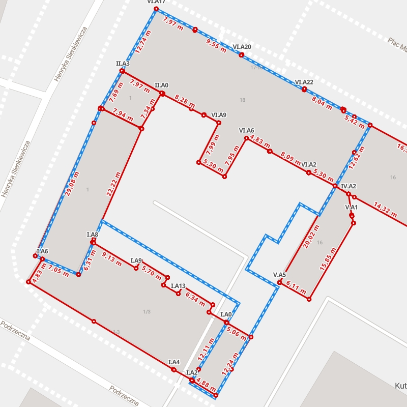 | A1 ← 52.23190118, 19.35657546 | A2 | 16,77 m |
