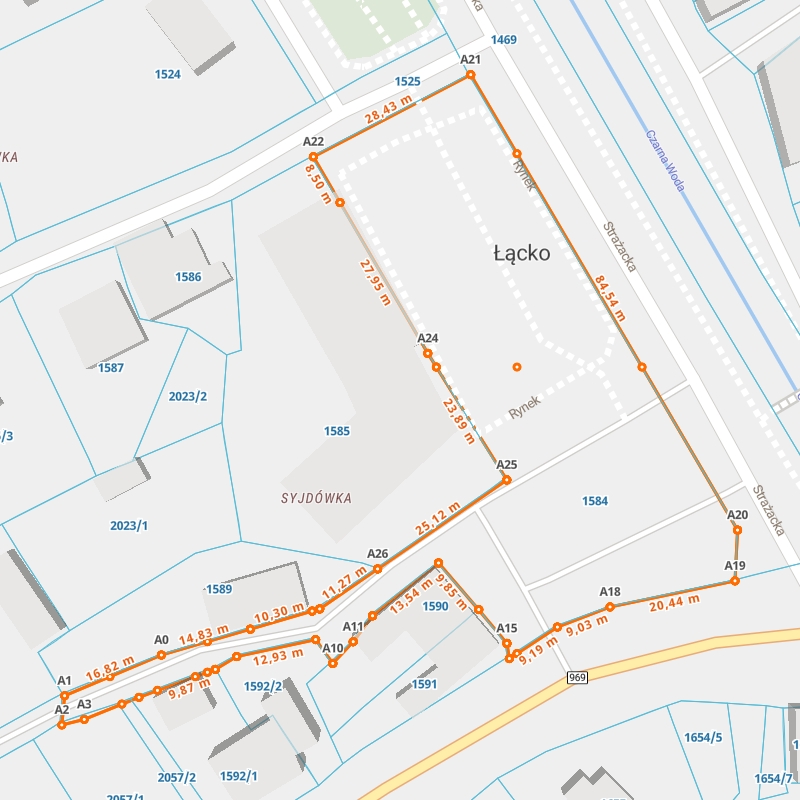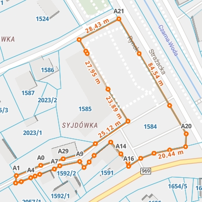 | A21 ← 49.55793232, 20.43481101 | A22 | 28,43 m |