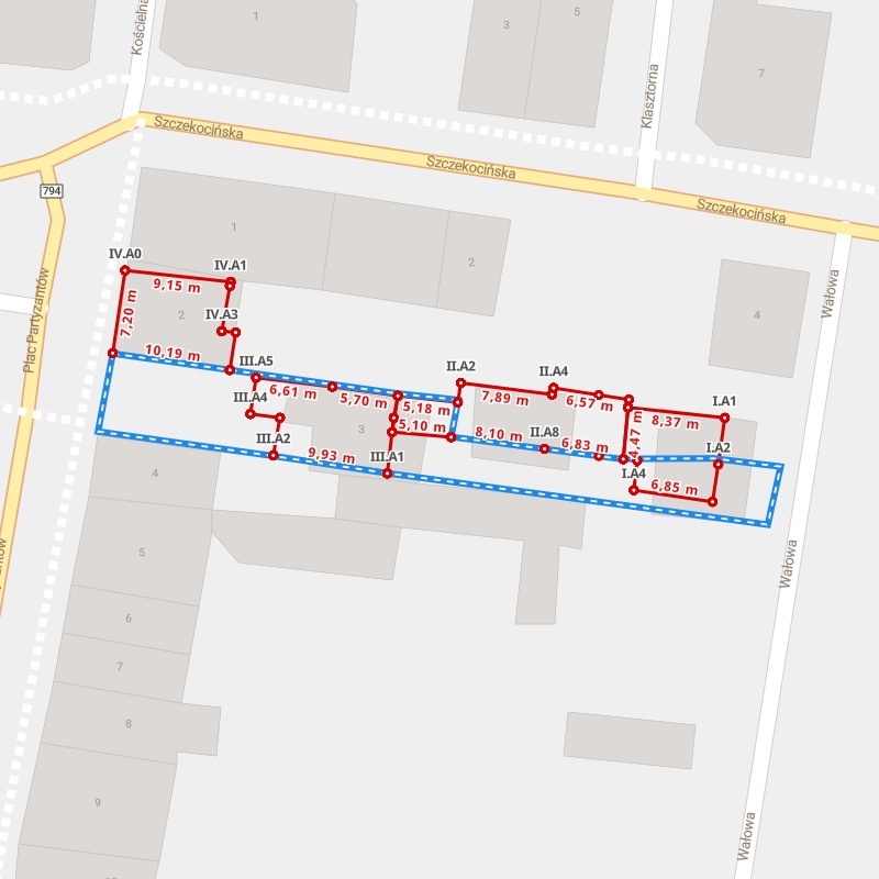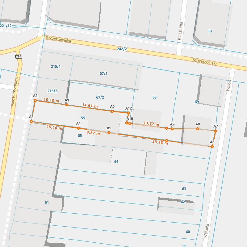 A1 ← 50.68338996, 19.62559493 | A2 | 10,18 m |