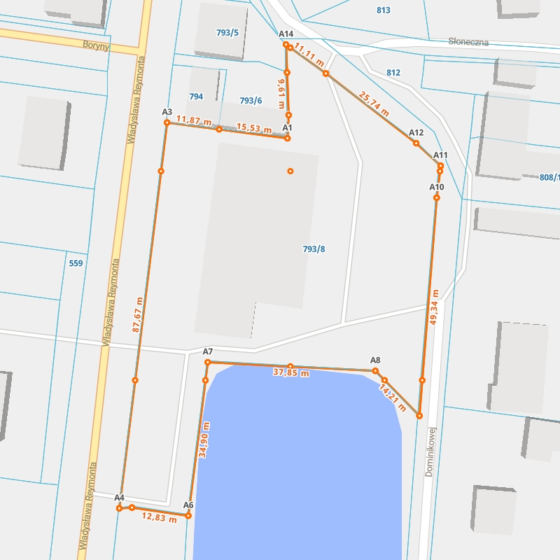 | A12 ← 51.90006822, 19.94300191 | A13 | 25,74 m |