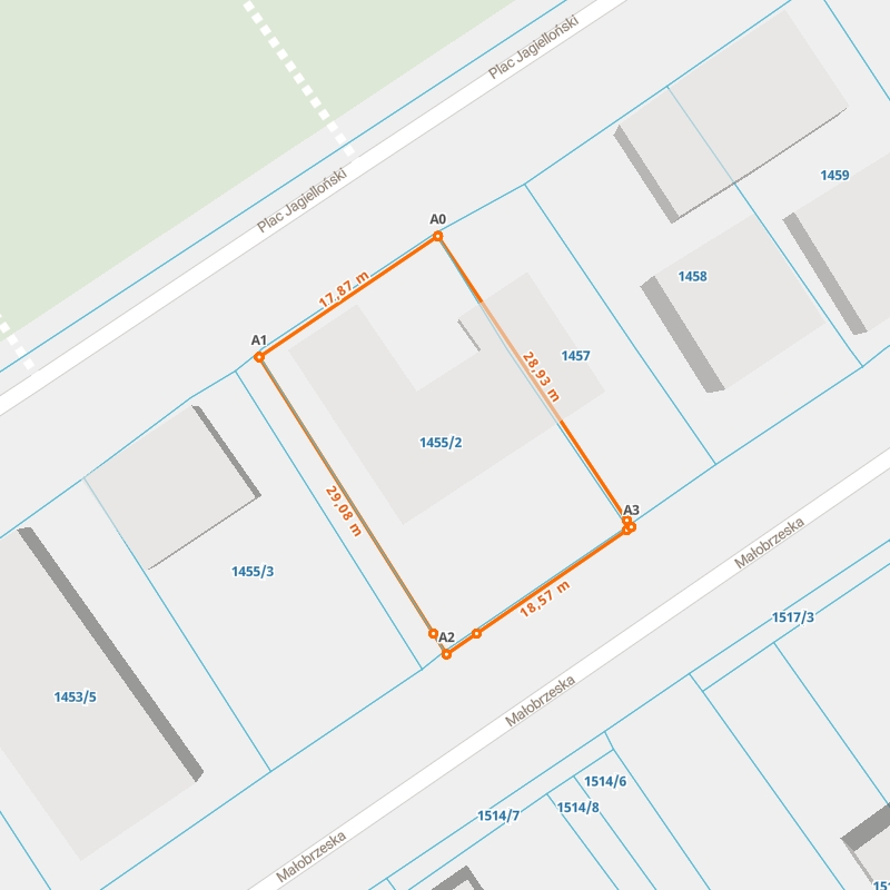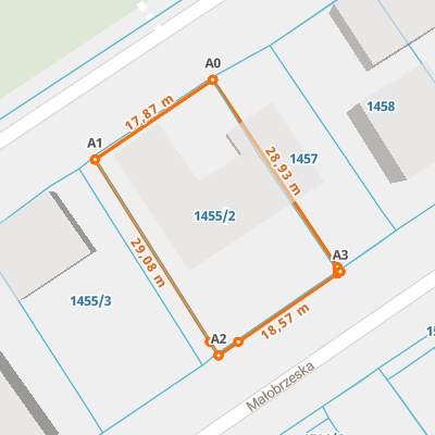 | A0 ← 51.90369661, 23.17577475 | A1 | 17,87 m |