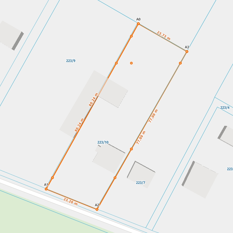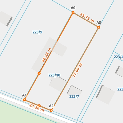 | A1 ← 50.55855356, 21.50213662 | A2 | 23,20 m |