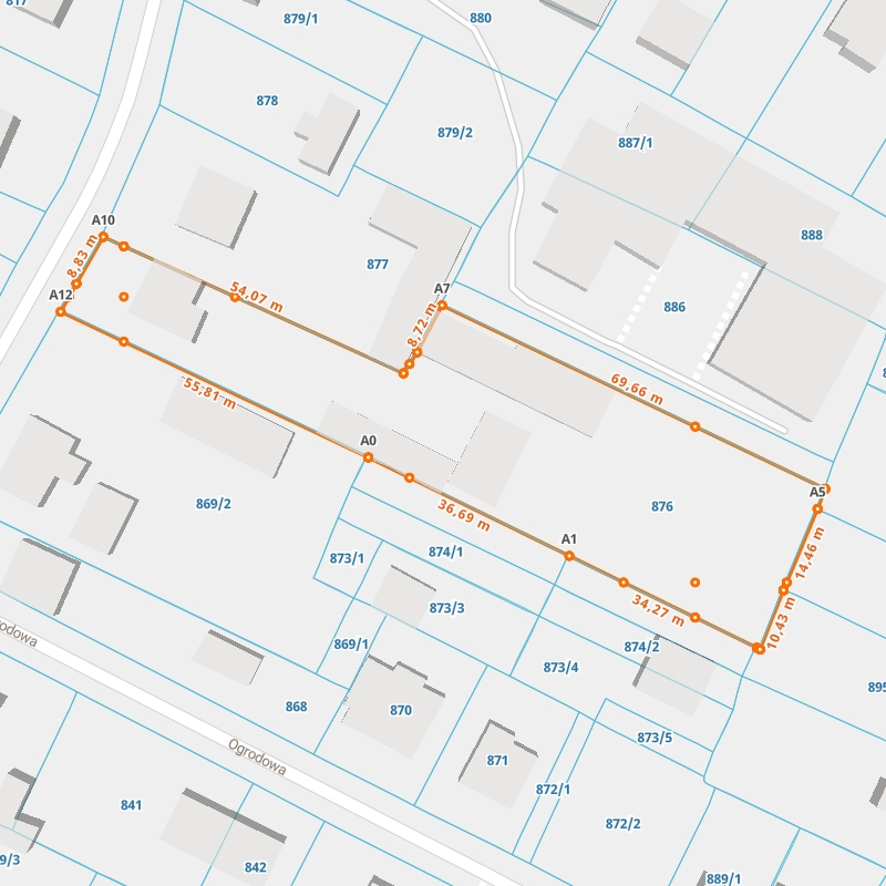 | A7 ← 52.20906688, 22.71465486 | A8 | 8,72 m |