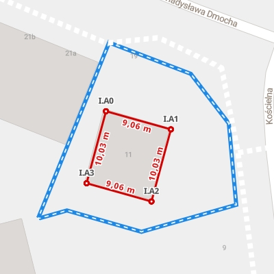 | A1 ← 51.93182614, 22.37940549 | A2 | 10,42 m |