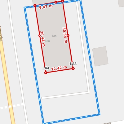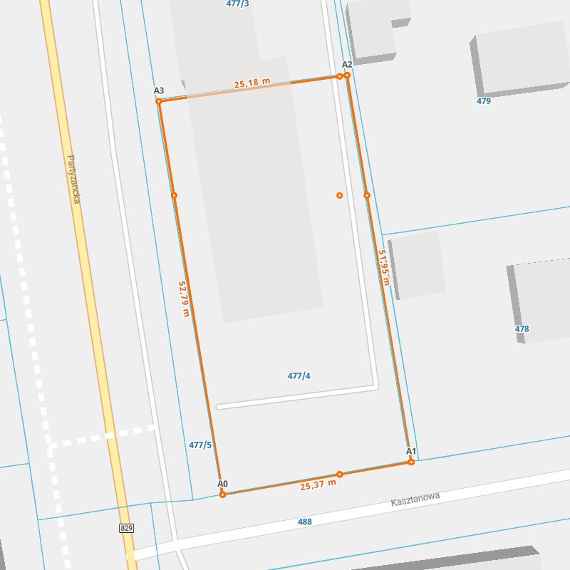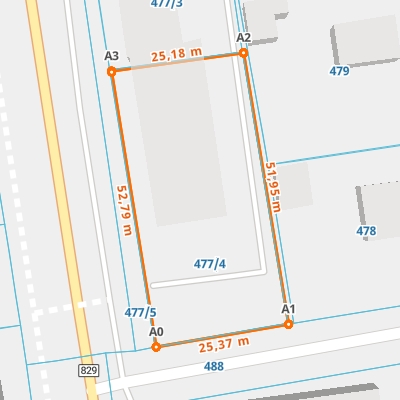 | A0 ← 51.22566673, 22.92790096 | A1 | 25,37 m |