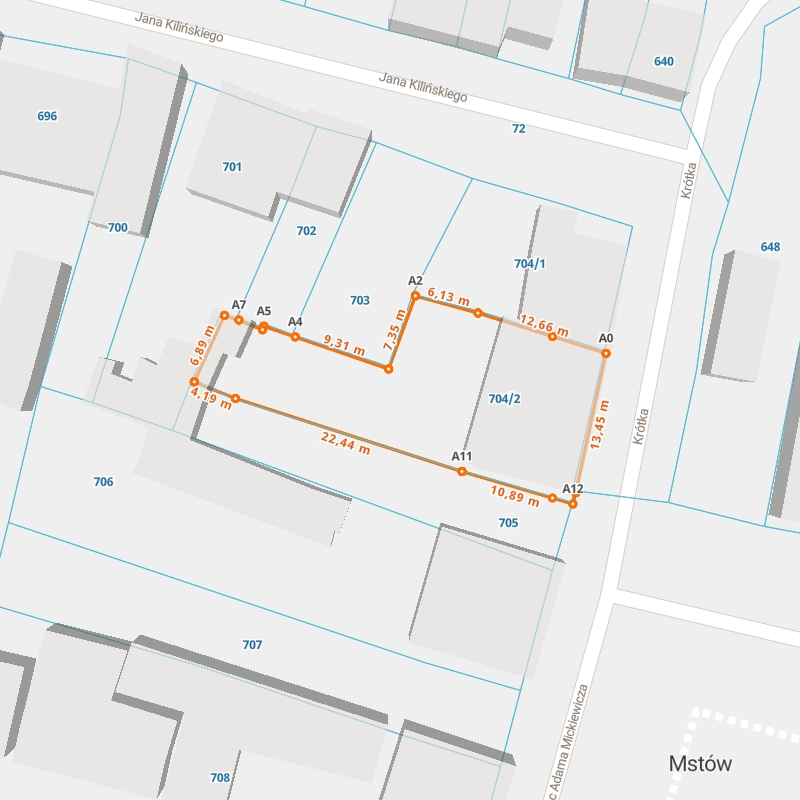 Sprawdź wymiary dowolnej działki oraz wymiary budynków na niej znajdujących się. Wyszukaj działkę po identyfikatorze lub adresie (np: 100204_4.0001.473) lub wyszukaj na mapie Geoportal Mstów. Pobierz raport z wymiarami działki lub bezpłatnie wykonaj pomiary na mapie.