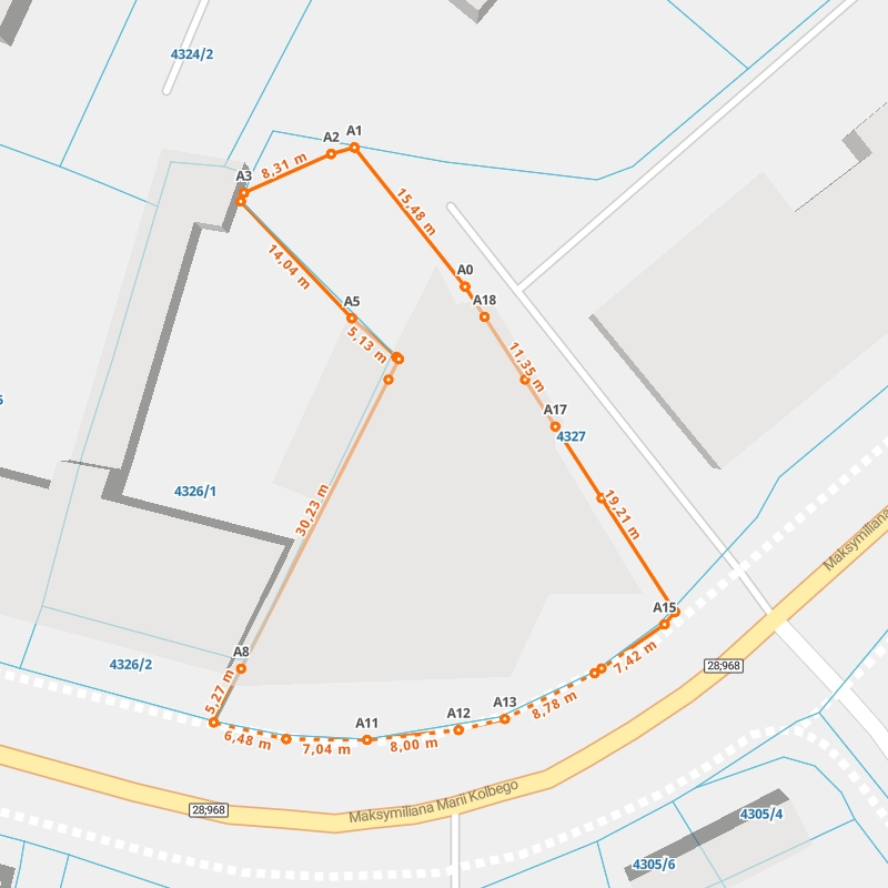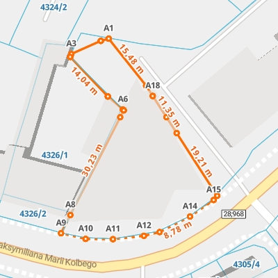 | A0 ← 49.67369966, 20.07837958 | A1 | 15,48 m |