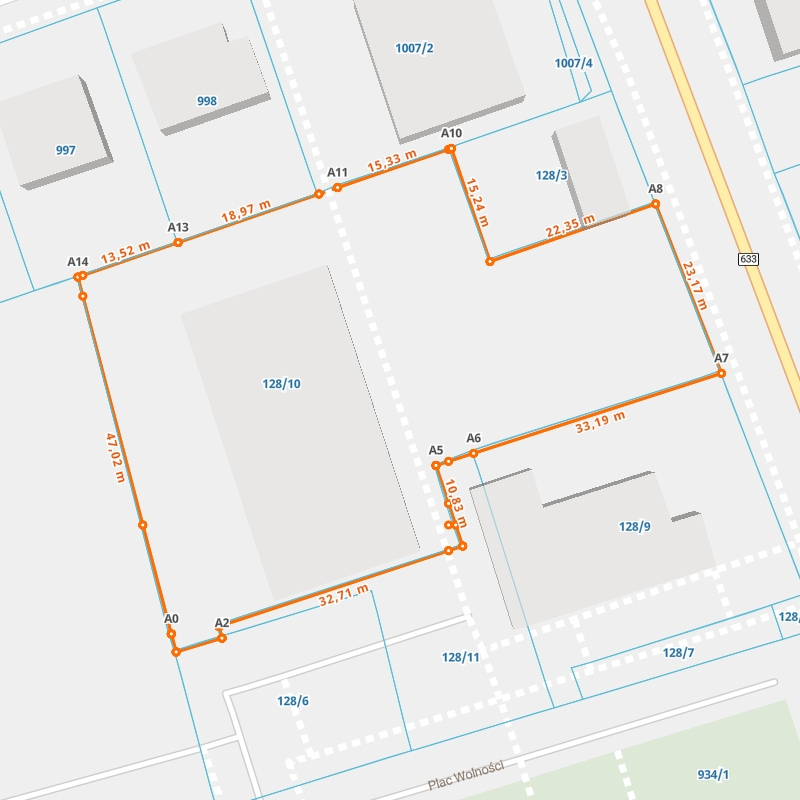 A10 ← 52.42148855, 21.03504709 | A11 | 15,33 m |