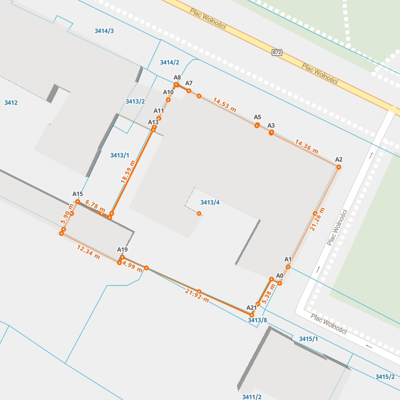 | A1 ← 50.5183565, 22.14352655 | A2 | 21,26 m |