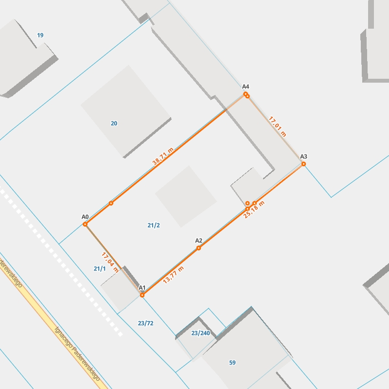 A0 ← 52.42855896, 20.71873698 | A1 | 17,04 m |