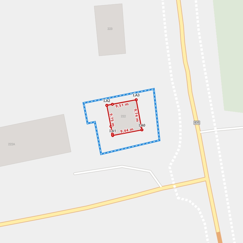 | A0 ← 49.77213439, 22.2073532 | A1 | 16,39 m |