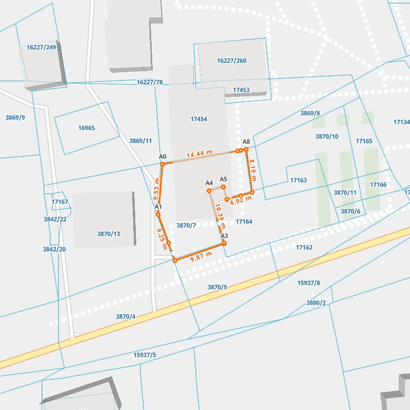 | A2 ← 49.52540123, 20.32007123 | A3 | 9,87 m |
