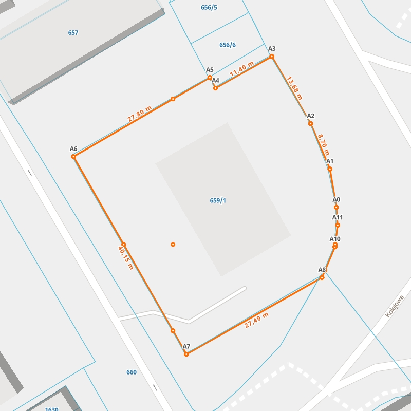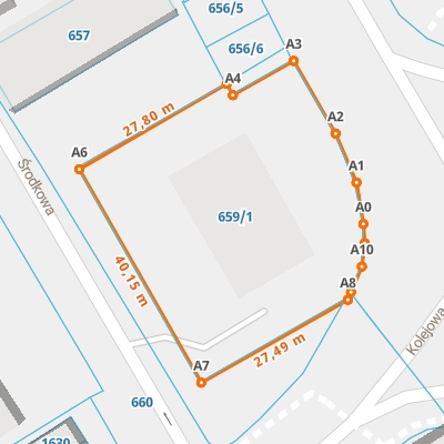 | A5 ← 54.03647206, 22.50387599 | A6 | 27,80 m |