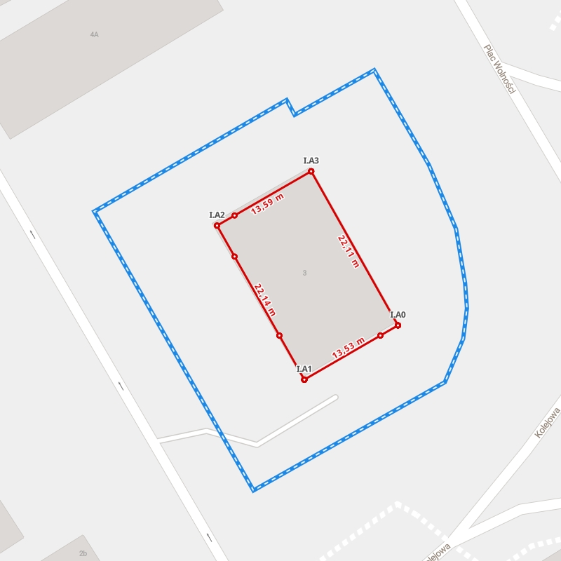 Ryc. 1. Parametry geometryczne terenu. Wymiary działki na kórej znajduje się Urząd Miejski w Olecku