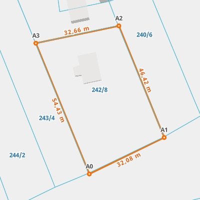 | A0 ← 53.16737366, 19.38977429 | A1 | 32,08 m |