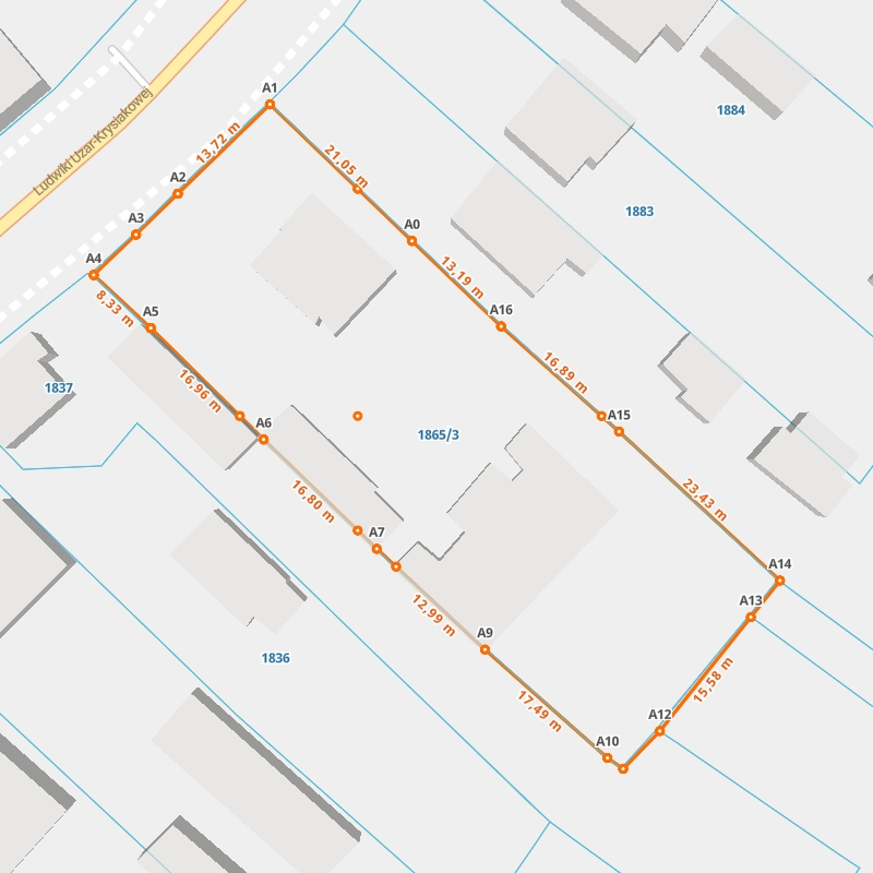 | A1 ← 50.4365965, 21.49770868 | A2 | 13,72 m |