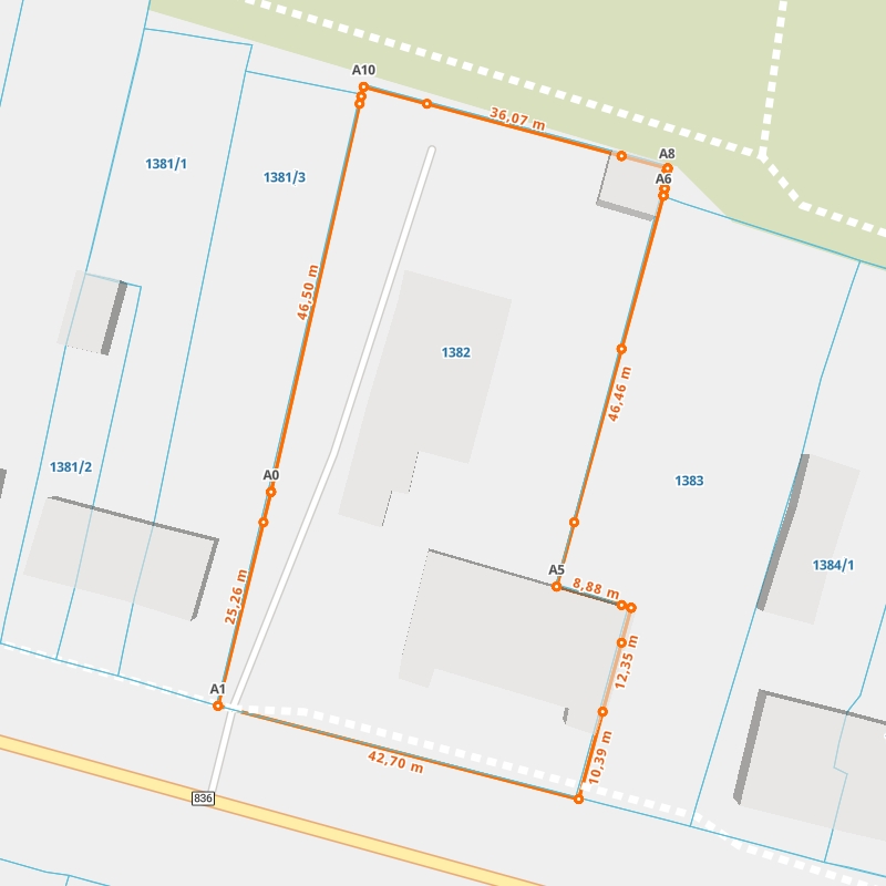 | A0 ← 51.13954057, 22.84652413 | A1 | 25,26 m |