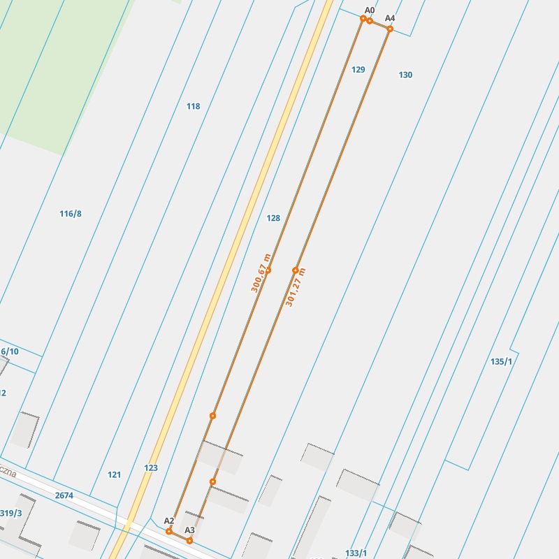 | A0 ← 50.56440495, 19.12154646 | A1 | 3,74 m |