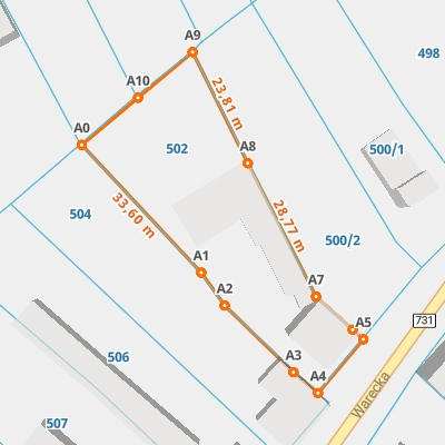 | A0 ← 51.68034789, 20.95860283 | A1 | 33,60 m |