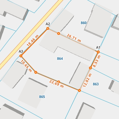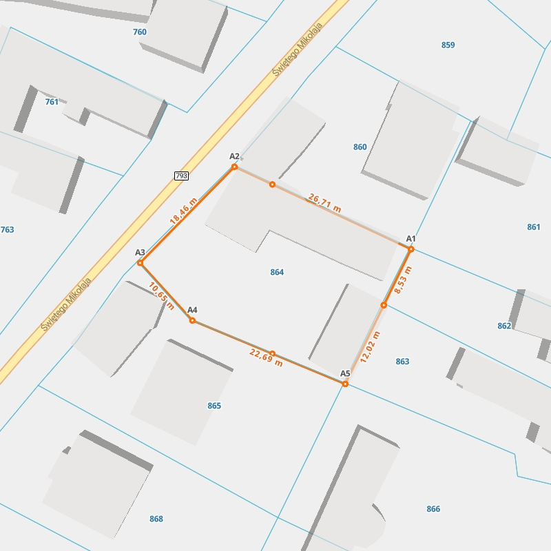 A1 ← 50.79936584, 19.52675169 | A2 | 26,71 m |