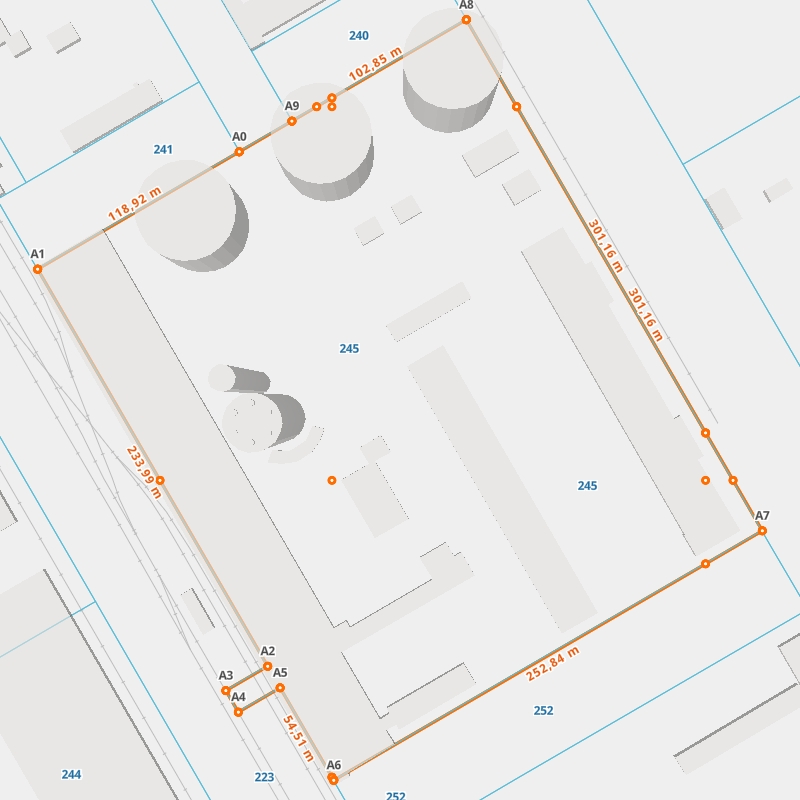 | A6 ← 51.45862297, 21.97129607 | A7 | 252,84 m |