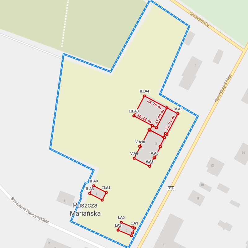 Sprawdź wymiary dowolnej działki oraz wymiary budynków na niej znajdujących się. Wyszukaj działkę po identyfikatorze lub adresie (np: 100204_4.0001.473) lub wyszukaj na mapie Geoportal Puszcza Mariańska. Pobierz raport z wymiarami działki lub bezpłatnie wykonaj pomiary na mapie.