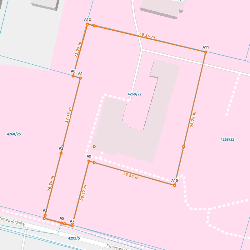| A1 ← 49.60495826, 19.96722894 | A2 | 32,16 m |