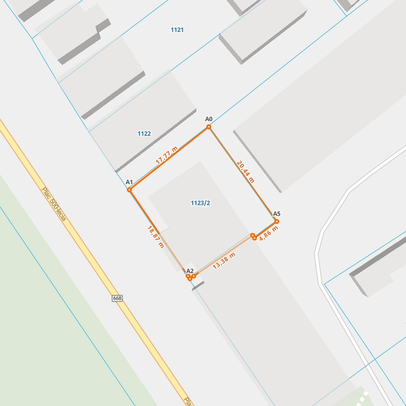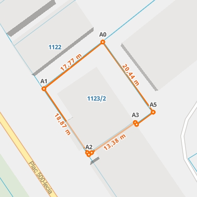 | A0 ← 53.410381, 22.40951343 | A1 | 17,77 m |