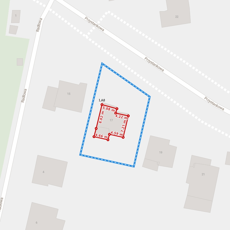 A1 ← 51.06912707, 17.03678819 | A2 | 18,96 m |