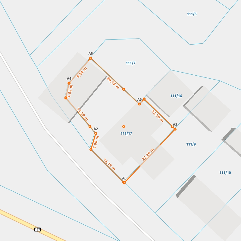 | A8 ← 52.61867583, 17.17700939 | A0 | 22,20 m |