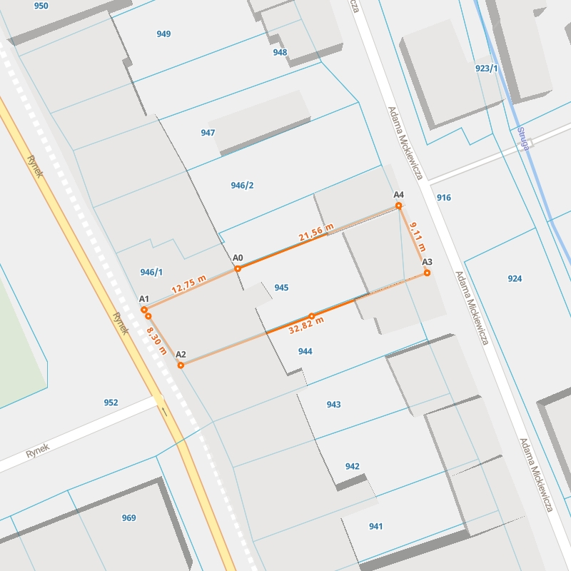| A1 ← 53.39787227, 19.57664356 | A2 | 8,30 m |