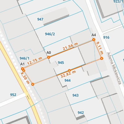 | A0 ← 53.3979184, 19.57681945 | A1 | 12,75 m |