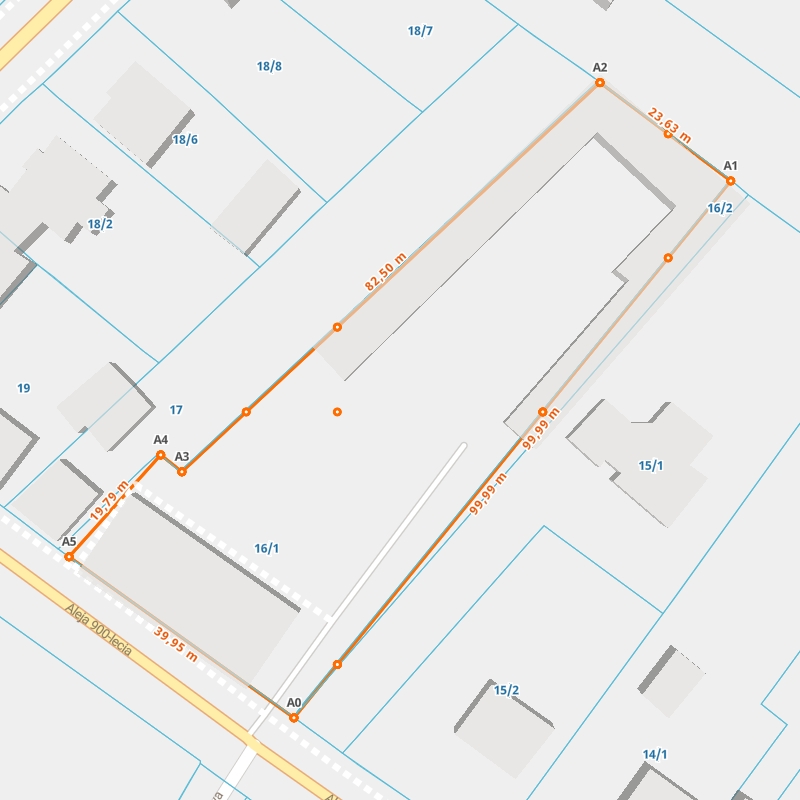 | A5 ← 51.30231338, 19.64677459 | A0 | 39,95 m |