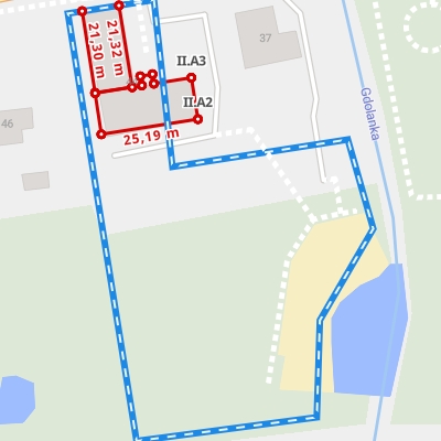 | A2 ← 51.23453355, 23.5922727 | A3 | 25,02 m |
