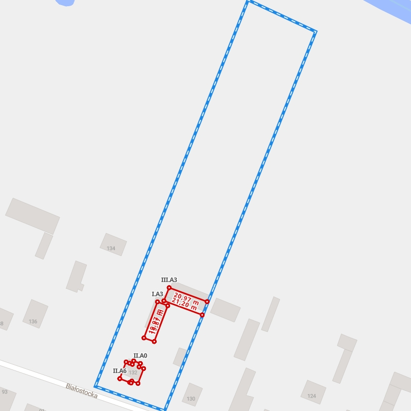| A1 ← 53.17453439, 23.04595799 | A2 | 38,78 m |