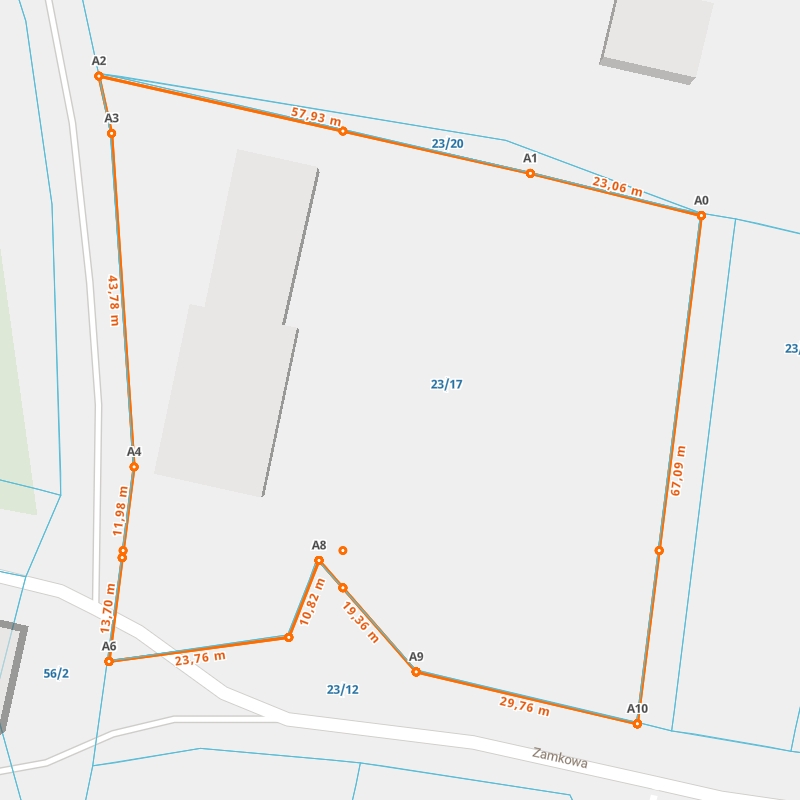 | A0 ← 50.35746503, 18.40379055 | A1 | 23,06 m |