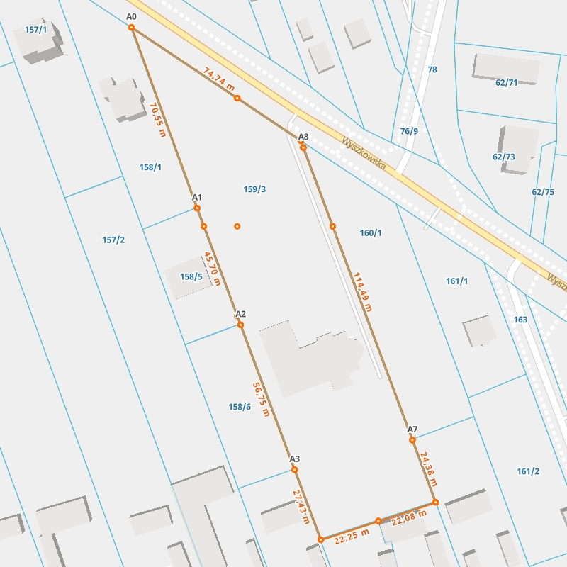 A7 ← 52.71354685, 21.3659277 | A8 | 114,49 m |