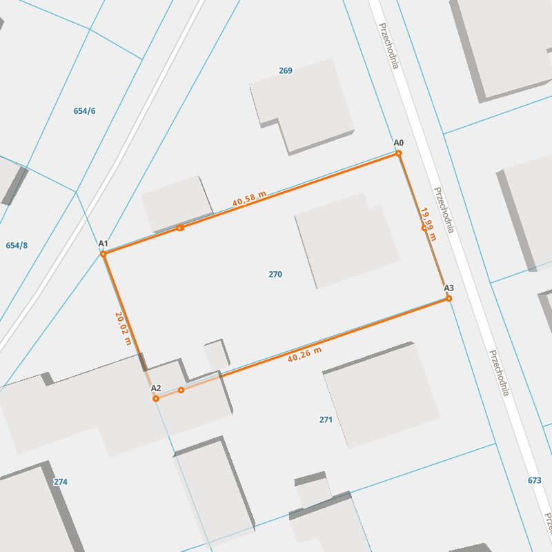 | A0 ← 53.05265203, 21.63421956 | A1 | 40,58 m |