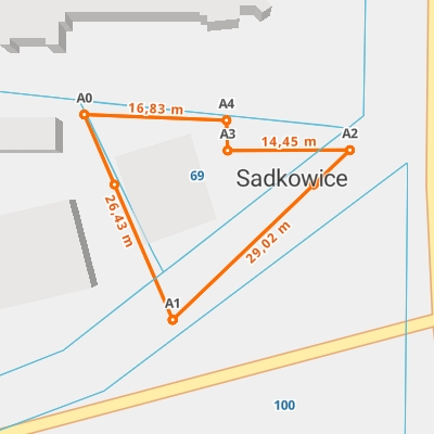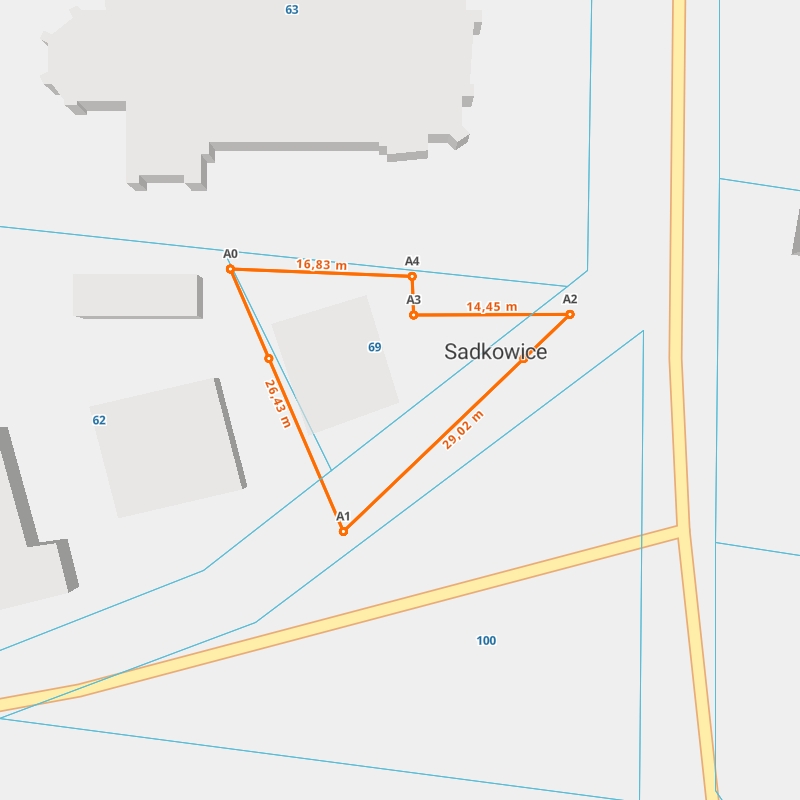 | A1 ← 51.72369451, 20.51356118 | A2 | 29,02 m |