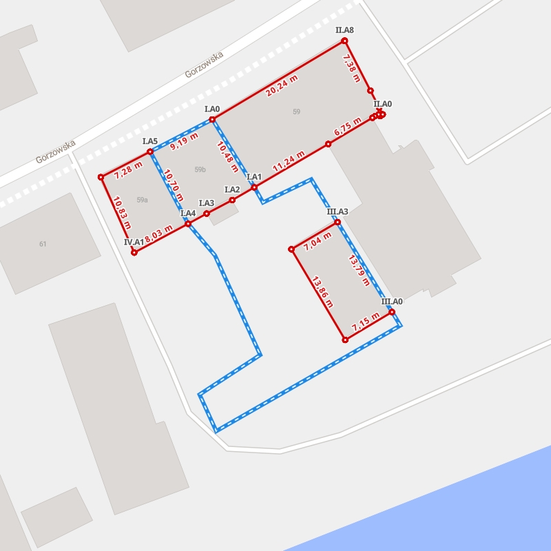 Ryc. 1. Parametry geometryczne terenu. Wymiary działki na kórej znajduje się Urząd Gminy Santok
