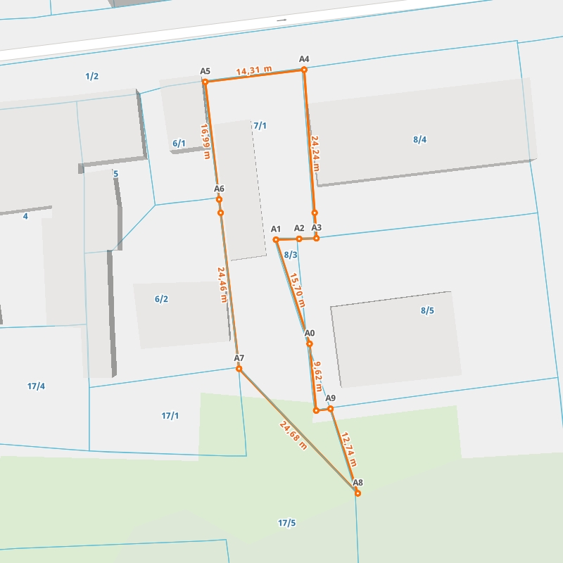 A8 ← 52.51230749, 21.07129449 | A9 | 12,74 m |